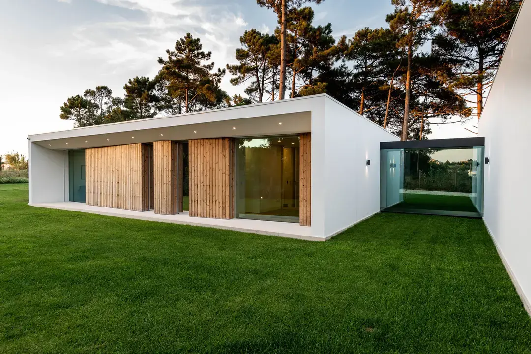 Casa de Janas is a project designed by Bloco6 - Arquitectos that stands out for its surroundings in the Janas pine forest in Sintra. The materials supplied by Jular were the Thermowood façade and cladding, Swood flooring and, outside, the deck that surrounds the swimming pool. This project is on a single floor and has a privileged relationship with the garden, pool and surrounding landscape.
