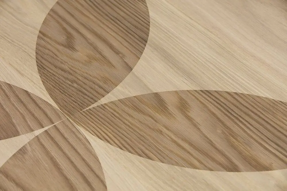 Pavimento em madeira de carvalho ou faia com tratamento térmico, que alia as características naturais da madeira à criatividade do design gráfico. A tecnologia inovadora da coleção Carving permite realizar personalizações e gravar designs clássicos, retro-modernos ou contemporâneos, em superfícies de madeira oleada.