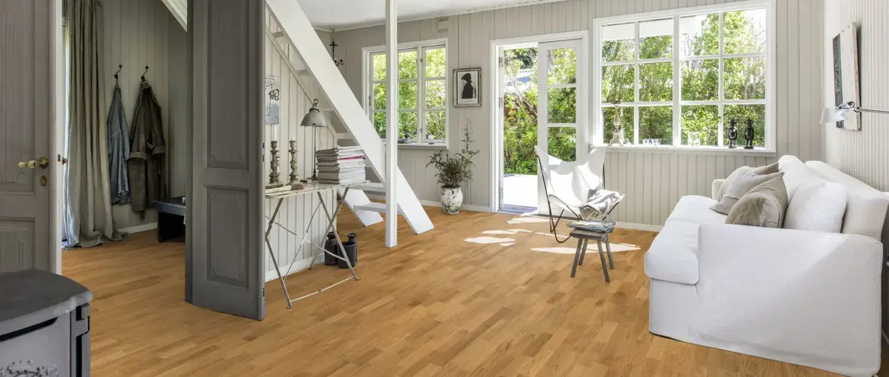 Pavimentos de madeira construídos em multilayer, sendo a superior de madeira nobre com a apresentação de lamelas tradicionais.